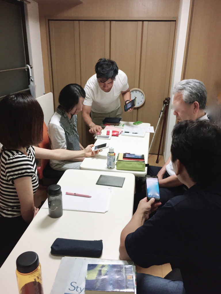 コミュニケーションの手助けになるツールとして、メモをとることはとても有効です。日時=When、場所=Where、だれ=Who、何=Whatは、感情が入る部分がない共通認識により伝達しやすい事柄なので、メモをとれれば間違いが生じません。そのメモをとる方法のひとつに、みなさんがだれでも持っているスマートフォンを活用していただきたくて、今日は講師を招いてそのトレーニングを行いました。みなさん、それぞれ機種が違うので、ひとりひとり操作方法を教え、簡単にメモを録音する操作方法を何度も繰り返しました。実際のコミュニケーションの場では、メモの録音を相手に了解をとることも大切です。通常どんな場でも、何も言わずに写真を撮ったり録音したりすることは相手に不快な感情を抱かせてしまいますよね。失語症だからといって、写真撮影や音声録音していいわけではないので、その声がけもトレーニングしました。録音したメモを再生し、内容を正確に把握できたか確認し合いました。すると、全員が正確に情報が伝わり内容を理解できたことがわかりました。 みなさん、これなら大丈夫!と笑顔になりました。よかった〜!実際に役立つトレーニングをこれからも探求し続けます。みなさんの笑顔がもっと増えますように。