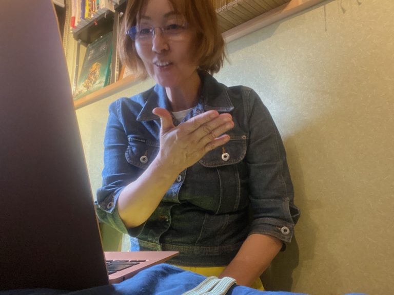 オンライングループセッション。今行っているのは、2名の方が交互に話者、聴き手となって興味や関心のある事柄を10分でプレゼン。質疑応答、感想を言います。私は、会話の舵取り役。