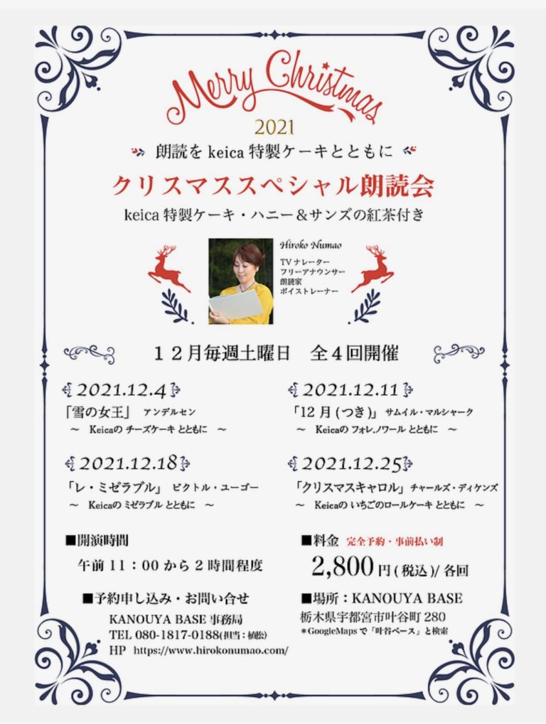 ご予約は、ホームページから。*10名様限定朗読先着順