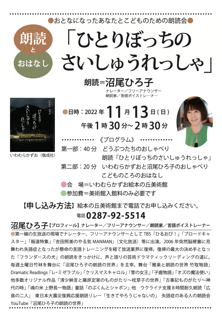 おとなになったあなたとこどものための朗読会「ひとりぼっちのさいしゅうれっしゃ」