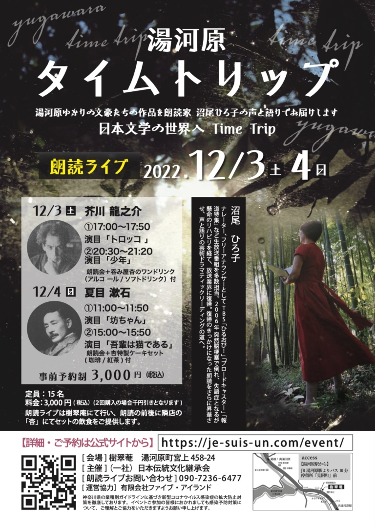 湯河原にゆかりの文豪たちの作品、今回は芥川龍之介と夏目漱石を朗読します。