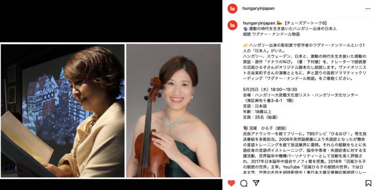 「ワグナー・ナンドール物語」朗読公演が、リスト・ハンガリー文化センターで開催されることが決まりました。とても、とてもうれしい!