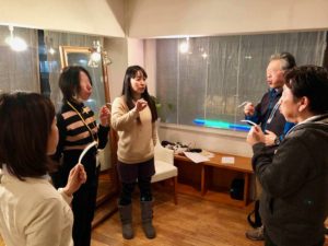 シチュエーションに応じた自己紹介ができるようになりたい、というご要望があって、そのカリキュラムを作りました。まずは、みなさんが一番多く公の場で自己紹介をするであろう、失語症の方の集まりのというシチュエーション。集うひとの属性がわかった後は、その場にいる人数と全体の時間を把握します。それによって、自己紹介の時間を判断します。①5秒自己紹介 ②10秒自己紹介③15秒自己紹介 ④30秒発症と現在 ⑤1分自己紹介、と5つの設定をしました。時間内に伝えるべき情報はなにかをみなさんに考えてもらいました。何を伝えるか、そのことをはっきり自覚することはとても重要です。会話が迷子にならない方法でもあるんです。名前は一番大切な情報ですね。はっきりと伝わる発声を練習しました。④は宿題にしてありました。今日は、宿題の発表をしました。その中に「あなたは失語症です」といきなりSTの方に告げられた方のお話がありました。胸が切り刻まれるように悲しくなりました。どれだけの戸惑いと不安を与えたことでしょう。言葉のコミュニケーションのリハビリを専門職としているのですから、伝え方を大切にしていただきたいと心から思います。話が少しそれてしまいました。次回はさらに自己紹介をブラッシュアップしていきます。