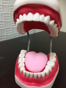 以前と同じような話し方がしたい、そうおっしゃる方は大勢いらっしゃいます。①はっきりと話したい②思ったことをすぐに言葉にしたい③伝えたい言葉をすぐに思い出したい。大きくはこの3つになるかと思います。まどろっこしくてイライラしてしまう気持ちがよくわかります。②、③については、また別の機会にお話することにします。今回は①のはっきり話したいについて、その中でも舌の動きについてお話しします。発音には口唇の形、動き、それを可能にする筋肉の動き、そして、舌の動き、位置が重要な役割を担います。話す時の口の中は通常見えません。そのため今までみなさんに舌の動きや位置を説明することがとても難しかったのです。絵に描いてみましたが、恥ずかしいぐらいに下手で絵の解明に時間を費やす結果になっていました。そこで投入したのが、正しい歯磨きを教えるための模型です。取り寄せてみると、手の平サイズを想像していたのですが、子どもの顔ぐらいの大きさ!持ち運びは少したいへんですが、大きいのでわかりやすくとてもよかったと思いました。これで口蓋のどの位置かを的確に伝えることができるようになりました。残念ながらこの模型、舌は自在には動かないので舌の動きを視覚で理解してもらうことができないのですが、イメージとして補助的に伝えることは可能です。この模型のおかげで格段に発音の改善が早くなりました。
