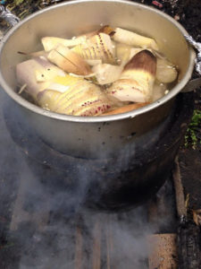 タカコおかあさんが薪でゆでてくれました。